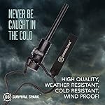 “excellent fire starting capabilities ” | “this thing is so cool started a fire in less than 5 minutes ” | “long term use and practicality make this exactly what I needed in my emergency bag ” the survival sparkle combines three pieces of essential survival gear into one compact tool. The fire starter kit includes a magnesium fire starter rod, a large striker, a high quality compass, and a 150 db. emergency whistle- all conveniently strung together on a lanyard for safe keeping. Built to last, our fire starter lights up to 15,000 times, and is an essential for outdoor activities including camping, hiking, fishing, hunting, and as part of your emergency survival supplies. Survival spark prevents you from ever being caught in the cold as it is weather resistant, cold resistant and windproof. Whether you are lighting a campfire, bonfire, bbq, or just need a quick flame, the survival spark has you covered. No need to fumble around with matches–simply shave a small amount of magnesium from the rod onto your tinder using the serrated side of the scraper. The amount needed is approximately the size of a us quarter. Next, hold the rod at an angle over the pile and forcefully slide your striker along the length of the rod until sparks land directly on the magnesium shavings and ignite the fire. For best results, strip the protective layer of paint from the striker before starting your fire. Dead end survival co. Manufactures the highest quality survival gear for men and women. Whether you are hunting, camping, fishing, biking, hiking or just like to be prepared, our gear prepares you for the unexpected. For the ultimate survival bundle, pair the survival spark with our survival watch, Para cord bracelet, grenade emergency keychain, and/or survival shack. The survival spark is the ultimate survival gear accessory. Order yours today and experience the peace of mind that comes with being prepared.